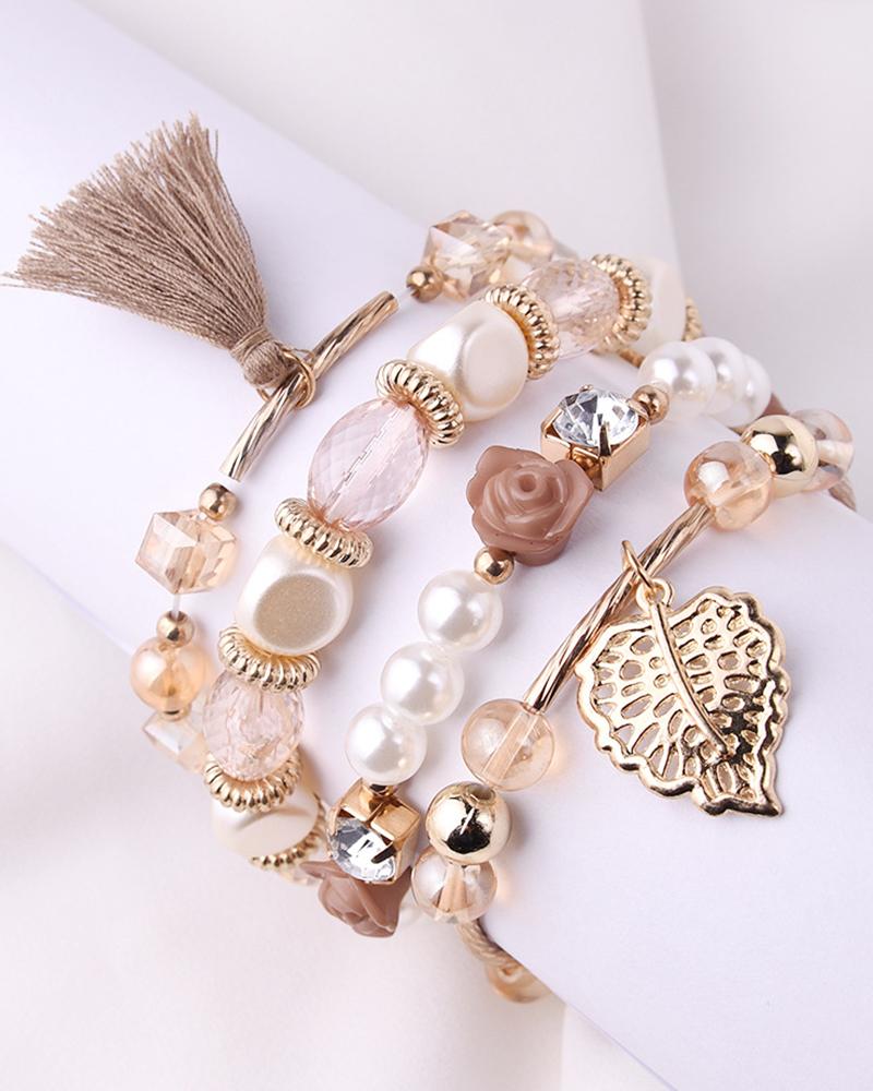 4PCS/Set Floral Leaf Pattern Tassel Design Beaded Bracelets