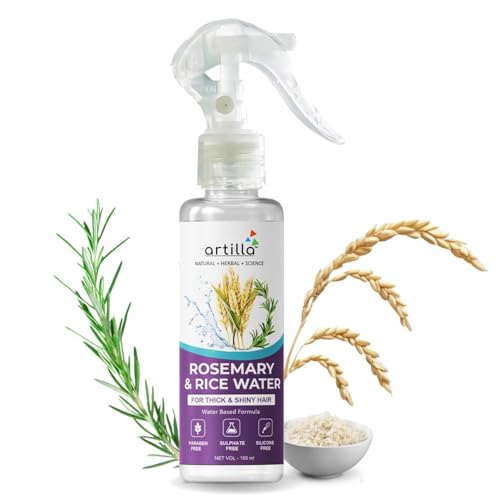 100% Natural Rosemary & Rice Water Extract- artilla Rosemary & Rice Water Hair Growth water spray is made with natural hair growth boosting, strengthening & conditioning ingredients like rosemary & rice water renowned for their benefits. This hair growth spray is a go-to root-to-tip solution for hair fall, hair thinning, frizz control, dry & brittle hair