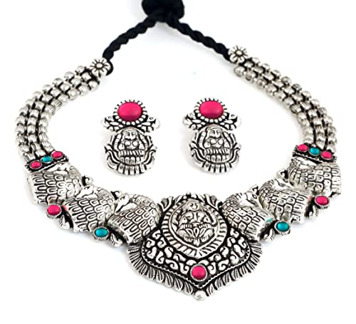 Betterminds Oxidised jewellery Choker set for Women latest Temple Necklace set for Women with Matching Earrings, Silver