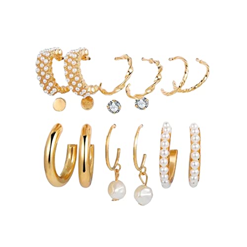 Destiny Jewel’s Womens Pearl Earring Stud Set Combo – Brass Pearl Round Triangle Earring Set Combo of 9 (Style4)