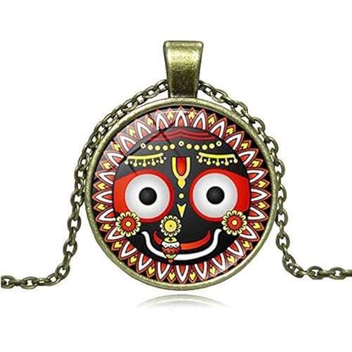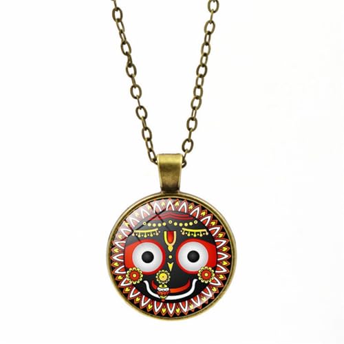 EDMIRIA Vintage Hindu God Lord Jagannath Necklace for Men Women Mandala Face Picture Charm Glass Lord Krishna Face Spiritual Jewelry