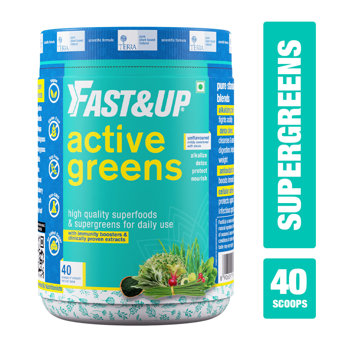 Fast & Up Active Greens – Daily Greens with Antioxidant, Cellular Defense & Alkalizing Blends-No Added Sugar (280 g)