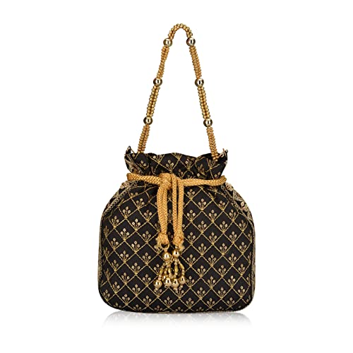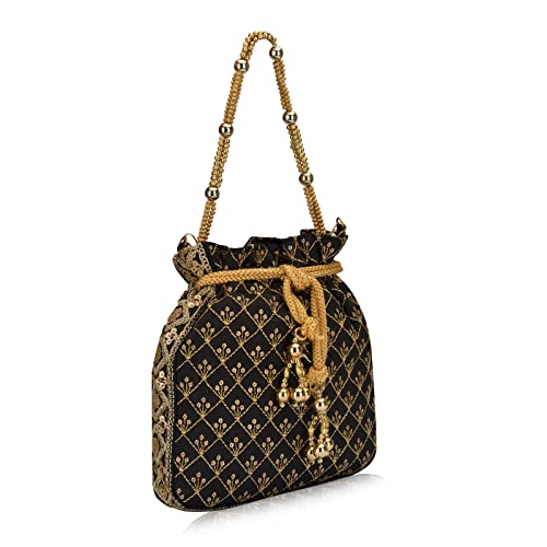 ✅ ACCESSORIES : This stylish potli / batwa comes with a long gold metal chain which can be comfortably used as a sling on your shoulder. It can be used as a wrislet with a matching beaded handle.
