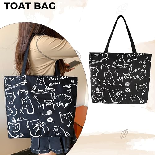 Kraptick Tote Bags – Stylish Shoulder Tote Bag for Everyday Use For Women Compact Reusable Perfect as a Grocery Tote Bag, Shopping Bags for Grocery (Mini Cat-Black)
