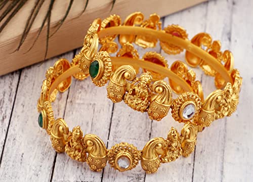 Mansiyaorange One Gram Gold Two Ruby Potta Stone Traditional Bangles For Women