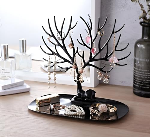 Oblivion Jewelry Display Stand – Jewel Holder with Storage Tray, Jewelry Organizer, Tree Tower Rack for Hanging Necklaces, Earrings, Bracelets, Rings