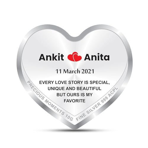 Precious Moments Personalised Heart Silver Coin 10Gram | 20Gram | 50Gram | Newly Married & Happy Anniversary, BIS Hallmarked 999 Pure by ACPL