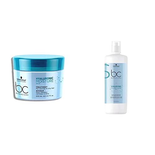 Schwarzkopf Professional Bc Hyaluronic Moisture Kick Treatment, Blue, 6.7 Fl Oz & Schwarzkopf Professional Bonacure Hyaluronic Moisture Kick Micellar Shampoo, 33.8 Fl Oz