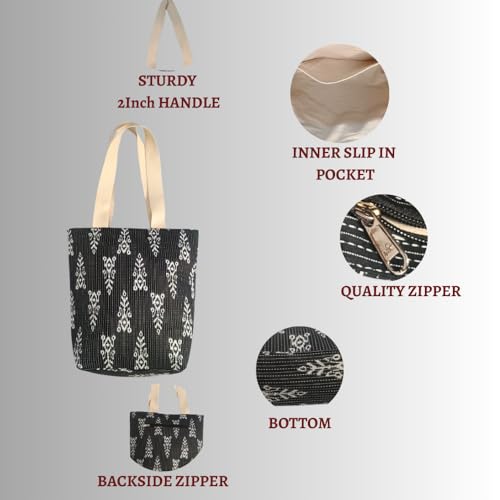 Eco-Friendly & Durable Materials: Made from 100% eco-friendly, Kantha and handwoven ikat cotton fabric with a thick cotton inner lining, this bag is strong and built to last. It’s a great choice for women who want to use sustainable, reusable products while still staying stylish