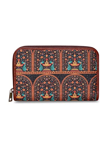 Material: This female mini wallet is made of fine Indian fabric and 100% PeTA approved vegan leather, thus making it a cruelty-free and responsible product. It has a water-resistant inner lining for long-lasting durability. Note that the product is handmade, with a running fabric and hence the exact print on the product might slightly differ from the photos.